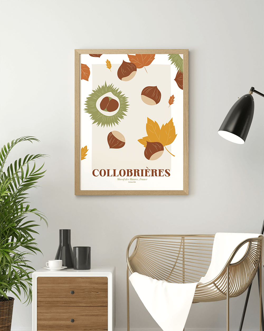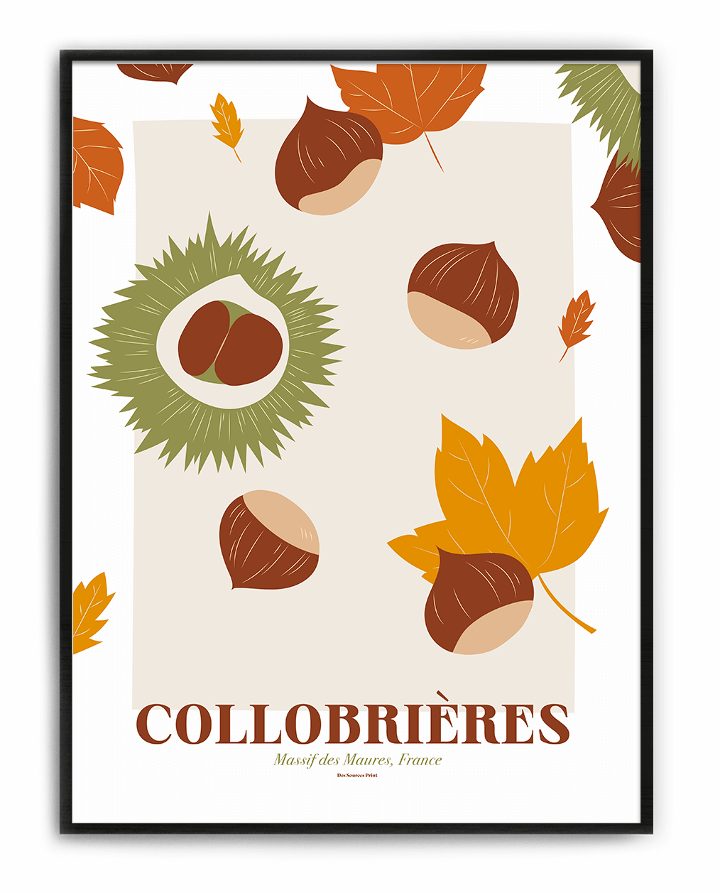 Plongez dans l’univers poétique de Des Sources Studio avec une illustration exclusive inspirée de Collobrières, le charmant village varois réputé pour ses châtaignes et son authenticité provençale. Cette œuvre minimaliste rend hommage aux célèbres châtaignes de Collobrières, symbole du terroir local. À travers des lignes épurées et un design élégant, cette illustration capte l’essence de la nature dans sa plus grande simplicité. Que vous soyez amoureux de la Provence ou amateur d’art contemporain, cette création apportera une touche douce et raffinée à votre intérieur. Nichée au cœur du massif des Maures, Collobrières séduit par ses paysages pittoresques et son lien profond avec la nature. Connue pour sa fête de la châtaigne et ses produits artisanaux, la ville invite à ralentir le temps et savourer les plaisirs simples. Cette illustration capture cette essence, offrant une véritable évasion artistique.