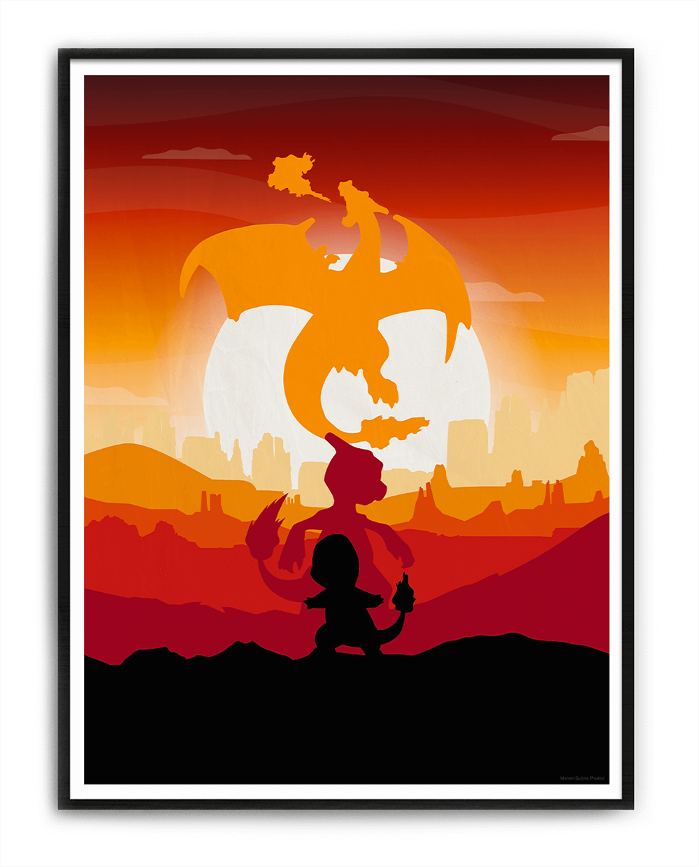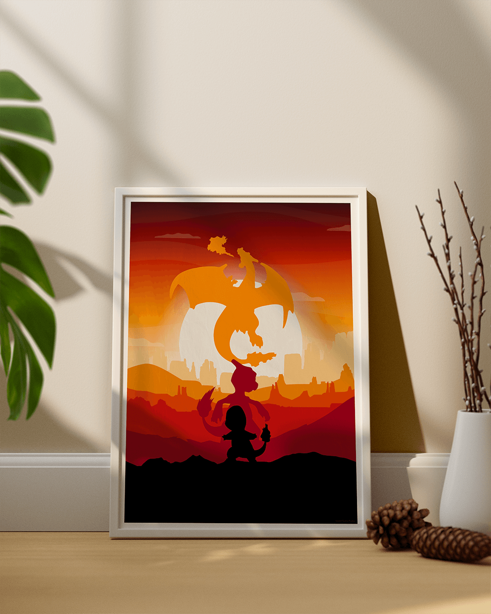 Affiche Salamèche Pokémon au style minimaliste. Une création originale Des Sources Print pour les fans de Pokémon et de décoration murale. Redécouvrez Salamèche, le petit dragon de feu le plus emblématique du monde Pokémon, à travers une illustration minimaliste signée Des Sources Print. Cette affiche Pokémon Salamèche mêle chaleur et tendresse, dans des tons orangés et dorés rappelant la flamme de sa queue et la lumière d’un coucher de soleil. Idéale pour les fans de Pokémon et les amateurs d’art graphique, cette création évoque la nostalgie et la magie des débuts de l’aventure Pokémon.